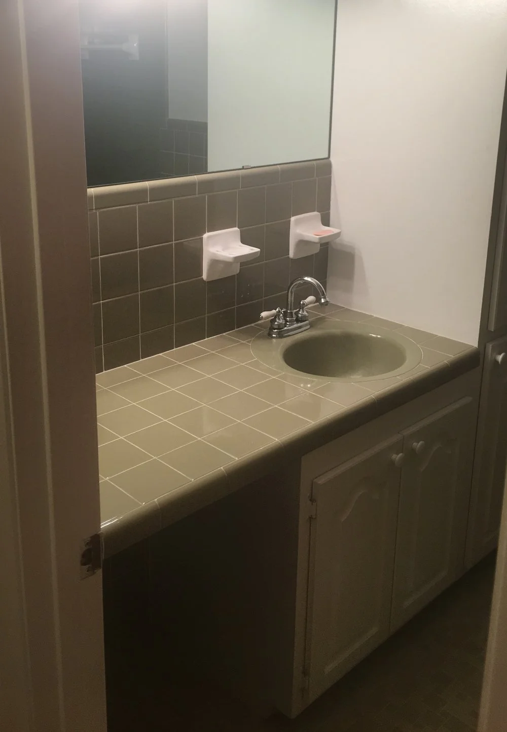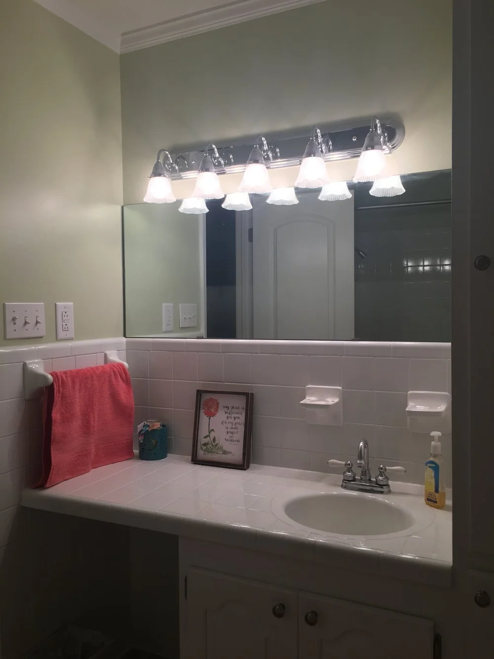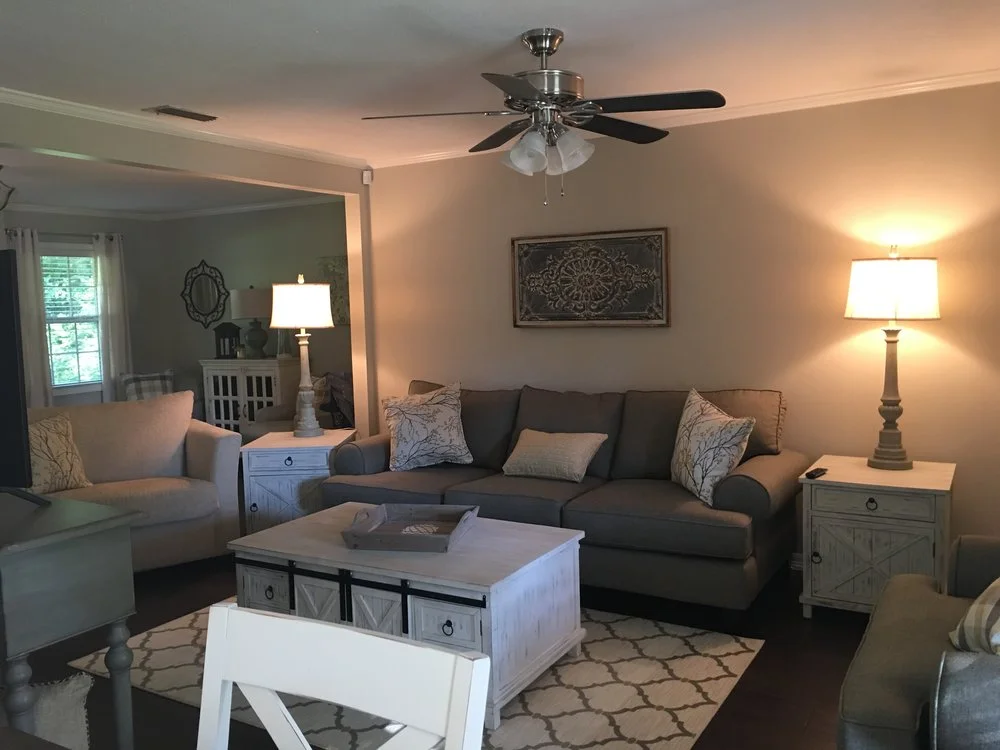 Kaitlyn’s mother, Kim Smith, and aunt Karlyn Pugh are owners of Rubies Home Furnishings and City Home Center. With over a decade in the renovation and décor industry, Kim and Karlyn have eyes to see beyond what a few decades can do to the cosmetic surfaces of homes. When Kaitlyn walked into the home for the first time, the green bathroom, wood paneling and general style of the home made it challenging to see the vision. The house, while outdated, would not require any major restructuring, and the neighborhood was great. “Thankfully, my mom and aunt Karlyn know the importance of a well-structured home because I couldn’t see past the brick on the front of the house” she said.