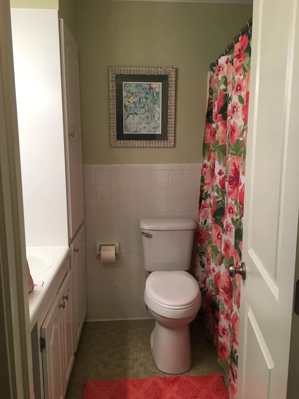 Karlyn’s tip for decorating any home is to pick one thing in each room for inspiration. “Whether it was a pillow or fabric swatch, taking something and building a room around it can make a home renovation so much less overwhelming,” Karlyn advises. Kaitlyn added some finishing touches of prints framed by Frames Unlimited in Laurel. One of the final pieces of artwork was the painting of a mermaid in the bathroom by artist, Katherine Ezell. “Kaitlyn has always loved mermaids since she looks like Ariel on The Little Mermaid, and Karlyn and I knew we wanted to give her something special to inspire her and remind her that she is loved,” said Kim. “Your first home is a big deal, and the memories Kaitlyn already has from the remodel and will continue to have as she entertains friends and family will last her forever.” Karlyn added, “We have done a lot of projects together, but this was by far my favorite.”